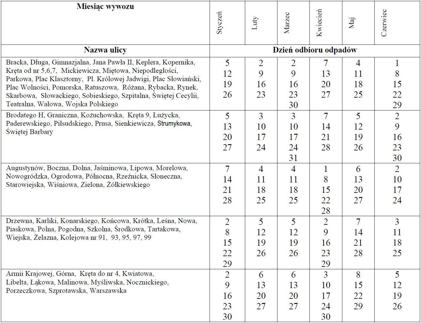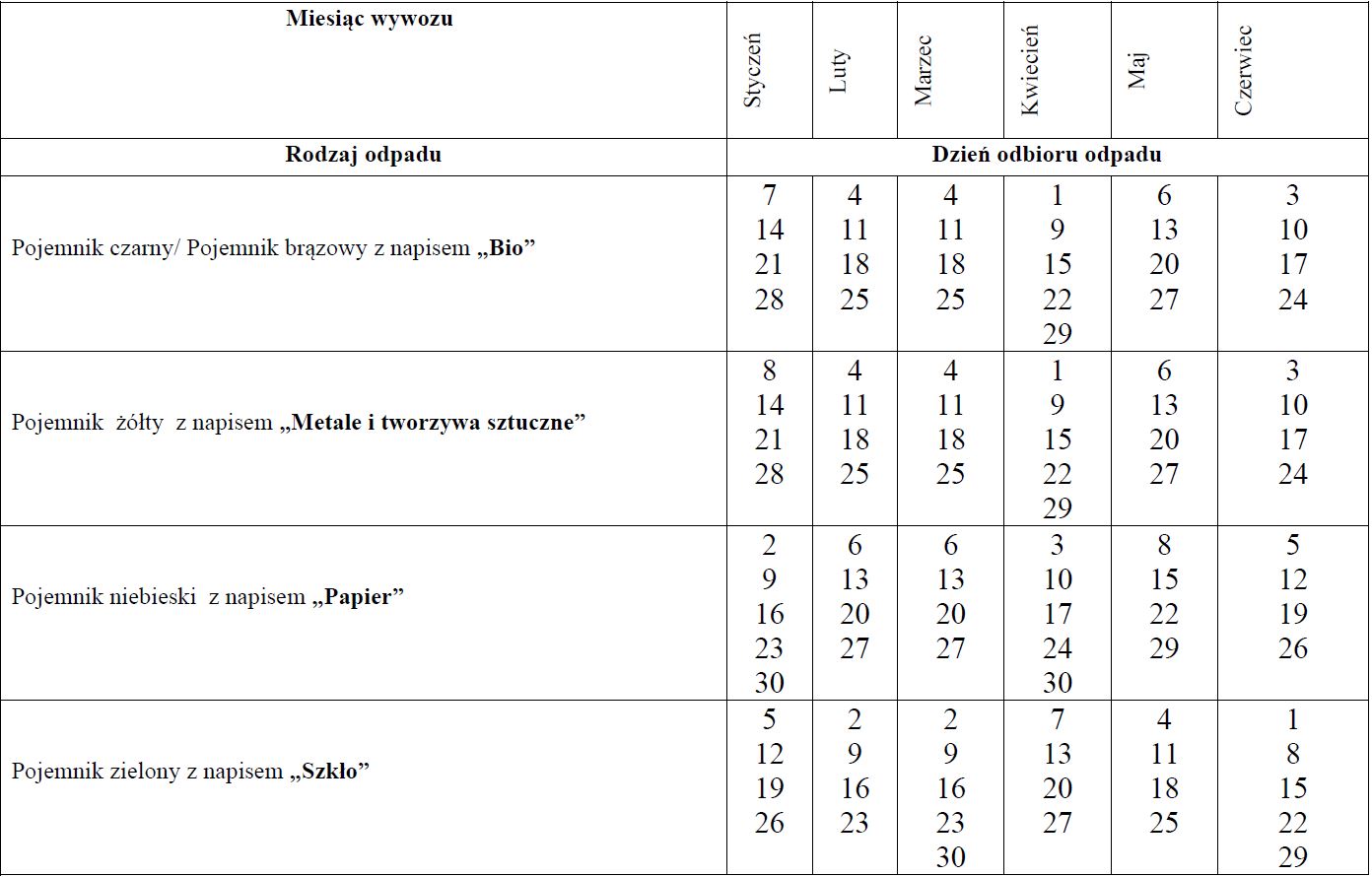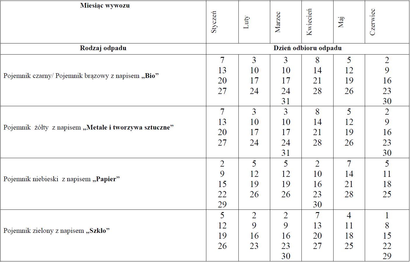 Harmonogram wywozu odpadów oraz Regulamin PSZOK znajduje się na stronie internetowej: www. mpoird.zagan.pl. lub www.bip.zagan.pl\