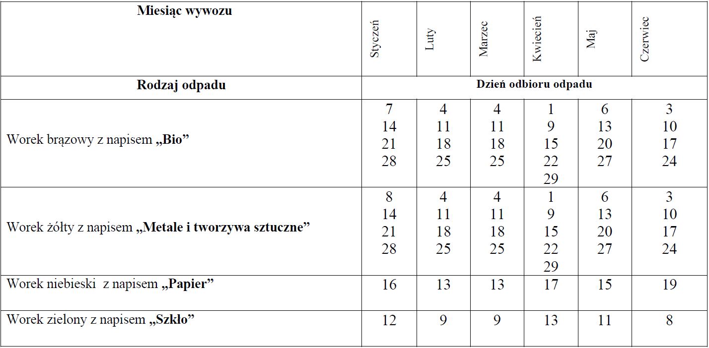 Rodzaj odpadu: ODPADY SEGREGOWANE ZBIERANE W SYSTEMIE WORKOWYM (zabudowa jednorodzinna)